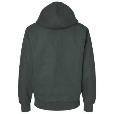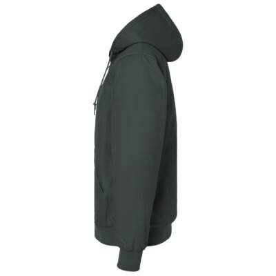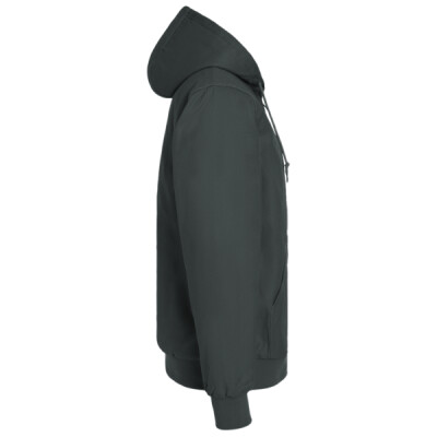 - Attached, three-piece, lay-flat hood with drawcord and cord locks for adjustability