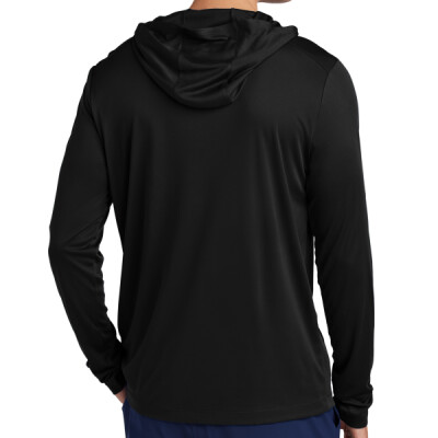 Take the lead in this high-performance long sleeve hoodie with exceptional UV protection, moisture wicking and snag resistance.